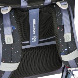 Lagana školska aktovka s ojačanim korpusom, idealna za djecu od 1. razreda. Pomični rastući leđni sustav, u potpunosti podesiva na tri veličine, pruža udobnost i komfor školarcima.