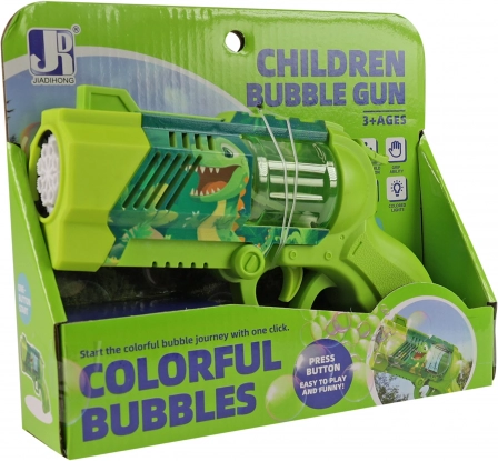 Razveselit će svaku dječju zabavu i obiteljsko popodne. Zeleni pištolj za mjehuriće u stilu dinosaura stvara puno mjehurića već nakon pritiska na okidač, a nadopunjuje ih svjetlosnim efektom koji oduševljava male i velike.