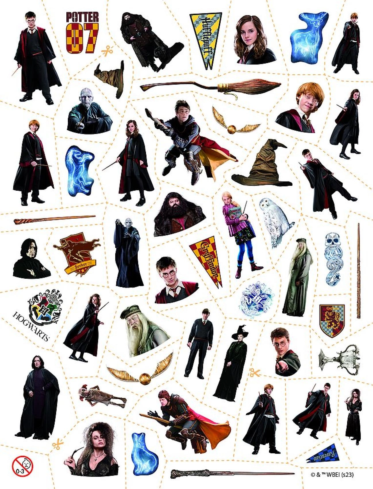 Ovaj set je idealan poklon ili način zabave djece na putovanjima. Sadrži 51 kom privremenih tetovaža s popularnim motivima iz filmova o Harryju Potteru i 12 listova za bojanje s prizorima iz svijeta Hogwartsa. Sve je uredno posloženo u mapama s motivom Harryja Pottera.