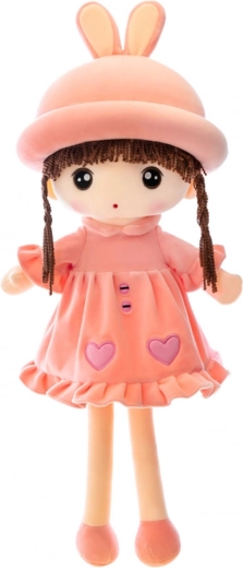 Tekstilna lutka ima nježnu haljinu s volanima, ukrašenu srčecima i gumbićima koji se lijepo njišu tijekom igre. Veliki šešir sa zečjim uškima daje joj bajkovit izgled. Duge pletenice i pomno odabrane boje čine ovu lutku idealnom prijateljicom za svaku djevojčicu.