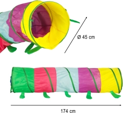 Ovaj simpatični tunel za djecu izvrstan je dodatak dječjoj igri, integraciji i senzomotoričkom razvoju. Djeca od 3 godine mogu se zabavno uključiti uz nadzor odraslih. Igračka-prepreke potiču razvoj motoričkih vještina i koordinacije pokreta.