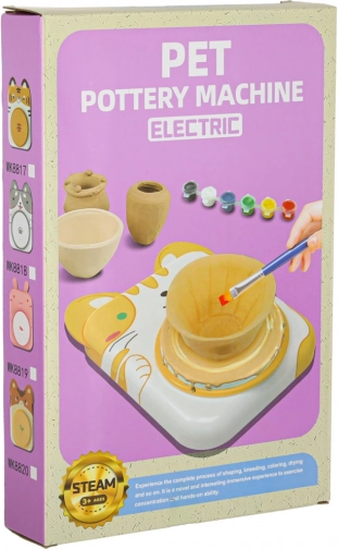 Ovaj kompletan set sadrži i meku glinu, razne alate za modeliranje te boje za dekoraciju, što pruža sve potrebno za trenutačan početak lončarske avanture. Oblik kola dizajniran je s motivom mačke, što privlači i zadržava dječju pažnju.