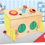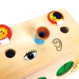 Otkrijte svijet svim osjetilima s ovom šarenom drvenom kutijom! Djeca će uživati u vježbanju dodira, sluha i vida zahvaljujući raznim interaktivnim elementima.