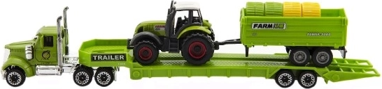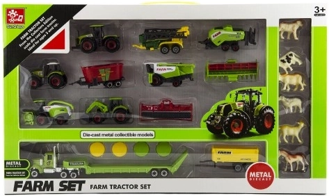 Set sadrži razne vrste vozila uključujući traktore i prikolice. Svojim realnim izgledom i pokretnim dijelovima ova igračka pruža sate zabave. Pakiranje dimenzija 53x31x5 cm drži sve dijelove dobro organizirane.