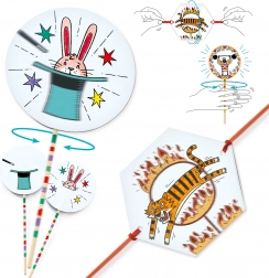 Otkrijte čaroliju drevnih optičkih iluzija s DJeco DIY thaumatrop Cirkusom, gdje djeca mogu stvarati vlastite pokretne priče pomoću jedinstvenih okruglih kartica i vrpci.