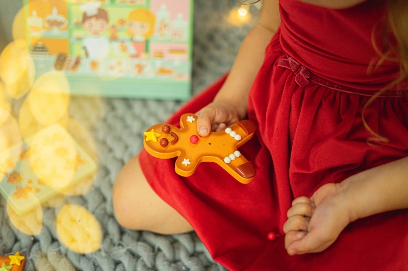 Ovaj kreativni drveni set donosi djeci radost “pečenja” bez mrvica i nereda. Dijelovi se lako slažu i zahvaljujući promišljenim otvorima čvrsto stoje na mjestu, pa djeca mogu iznova stvarati nove slatke kombinacije. Set je smješten u ilustriranoj kutiji koja ujedno služi kao praktična radna površina.