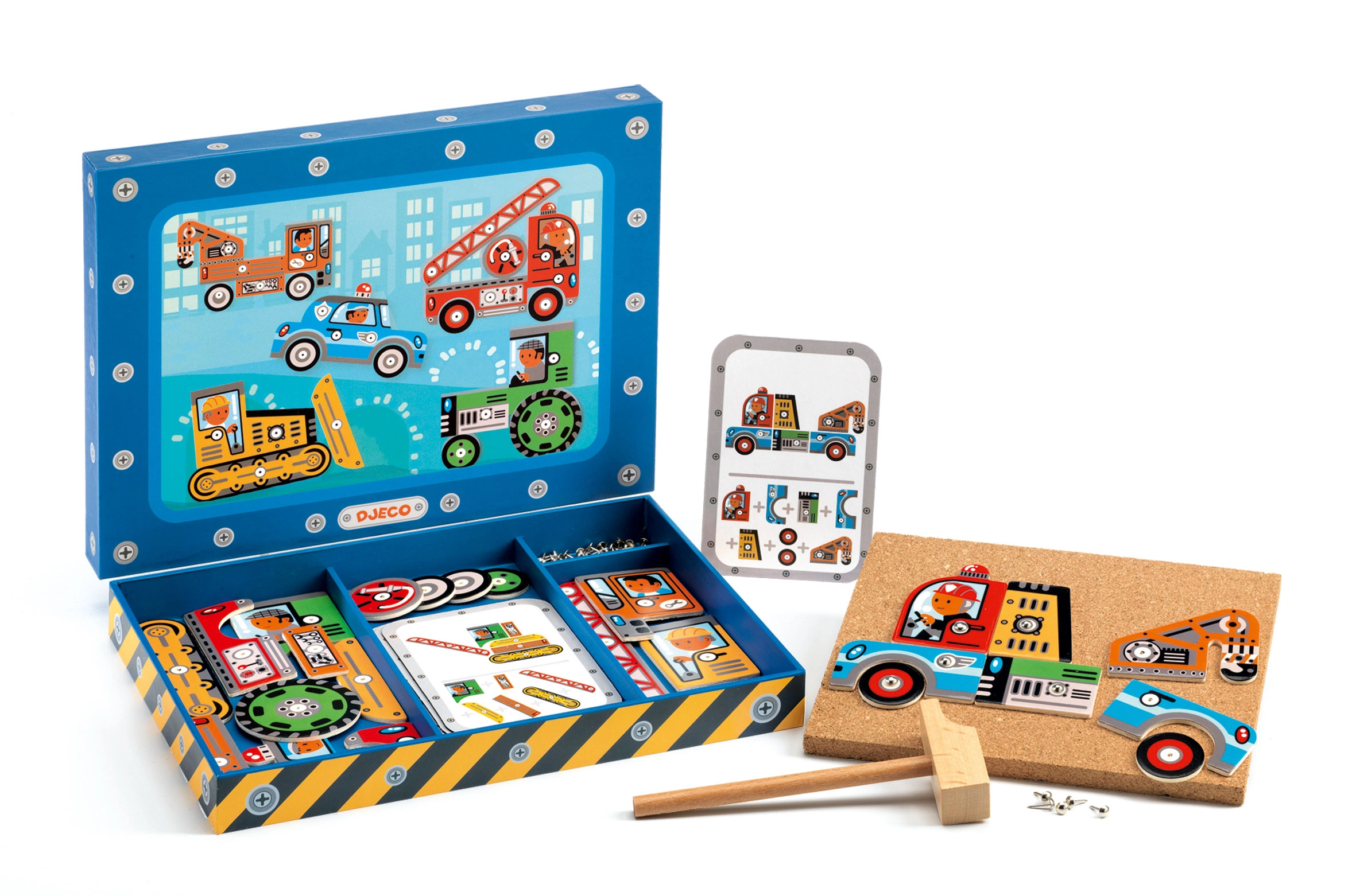 Uživajte u zabavi s drvenim autićima za zakucavanje Djeco. Ove kreativne igračke pomažu razvijati motoričke vještine i na zabavan način potiču maštu vaše djece.