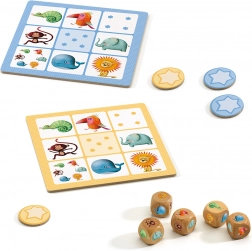 Svaki igrač koristi vlastitu ploču za igru na kojoj označava postignute kombinacije žetonima sa slikama životinja. Ovaj vizualni element pomaže razumjeti tijek igre i pratiti rezultat.