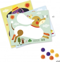 Kolaži s pomponima od brenda Djeco su kreativni set koji zabavlja djecu i razvija njihove vještine. Pseće igre nudi izradu simpatičnih kolaža s motivom pasa.