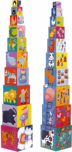 Sretni fontana toranj od marke Djeco nudi djeci zabavan način razvijanja njihovih motoričkih vještina i koordinacijskih sposobnosti. Povezuje igru i učenje sa šarenim i lako složivim kockicama.
