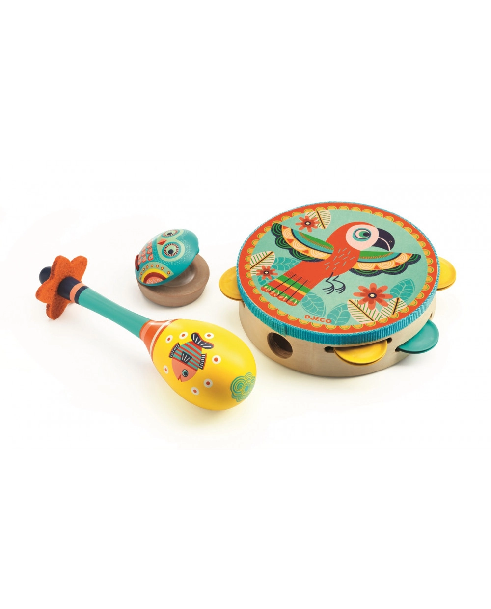 Glazbeni set Djeco uključuje raznolik izbor instrumenata savršeno prilagođenih malim rukama. Svaki je instrument pažljivo dizajniran kako bi bio siguran i jednostavan za uporabu za djecu. Uz ovaj set mali će glazbenici istraživati različite zvukove i ritmove, što potiče njihov osjećaj za ritam i koordinaciju.