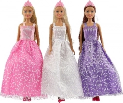 Detaljna balska/vjenčana haljina s nježnim uzorcima i krunom daje lutki bajkovit izgled.