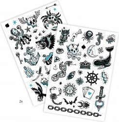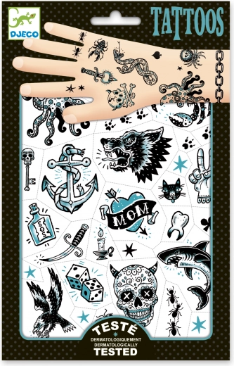 DJECO tetovaže Tamni svijet nude jedinstven dizajn koji privlači djecu i odrasle. Svaki set sadrži razne motive koje možete kreativno kombinirati i stvoriti jedinstveni izgled. Tetovaže su hipoalergene i lako se uklanjaju, što jamči da ih možete koristiti bez brige.
