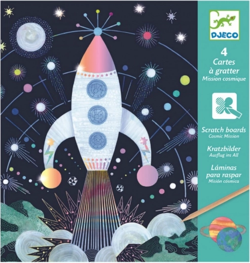 Strugalice Svemirska Misija od Djeco su sjajna kreativna zabava za djecu. Zahvaljujući ovim setovima, djeca otkrivaju čarobnu ljepotu svemirskih slika skrivenih ispod sloja za struganje.