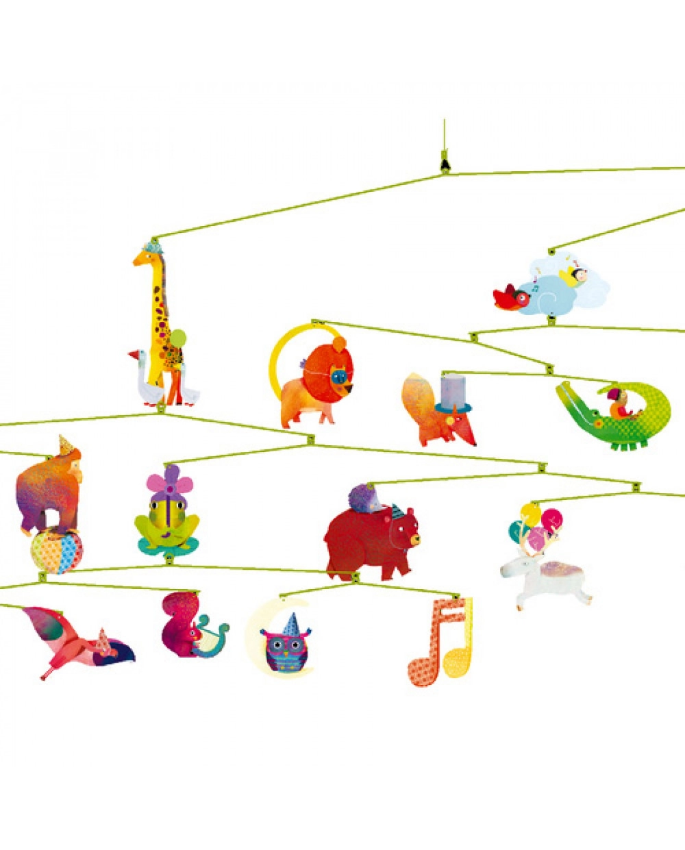 Viseća dekoracija Karneval životinjica brenda Djeco prekrasno je izrađen dodatak koji će svaku dječju sobu pretvoriti u veseli karneval. Svaka životinjica je šareno i detaljno izrađena: