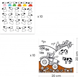 - Sadrži niz bojanki s farmerskim motivima koje potiču kreativno razmišljanje.