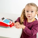 Ova kompaktna digitalna blagajna odličan je dodatak svakom dječjem dućanu. Zahvaljujući realnim funkcijama djeca će isprobati rad s novcem, skeniranje proizvoda i osnovno računanje. Blagajna je izrađena od izdržljive plastike, jednostavna je za upravljanje i svojim svjetlosnim i zvučnim efektima privlači na prvi pogled.