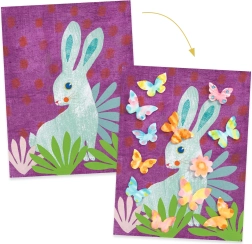 Set Djeco Stvaranje s upijačima iz šume donosi jedinstvenu tehniku slikanja na upijajući papir. Dijete odvoji oblik s unaprijed izrezanog upijača, postavi ga na podlogu, napravi nekoliko točkica olovkom i pipetom doda kap vode. Tinta se prirodno razlije i stvori čarobne, šarene efekte. Nakon sušenja gotovi motiv lako se zalijepi na ilustrirane pozadine i njime ukrasi sobu.