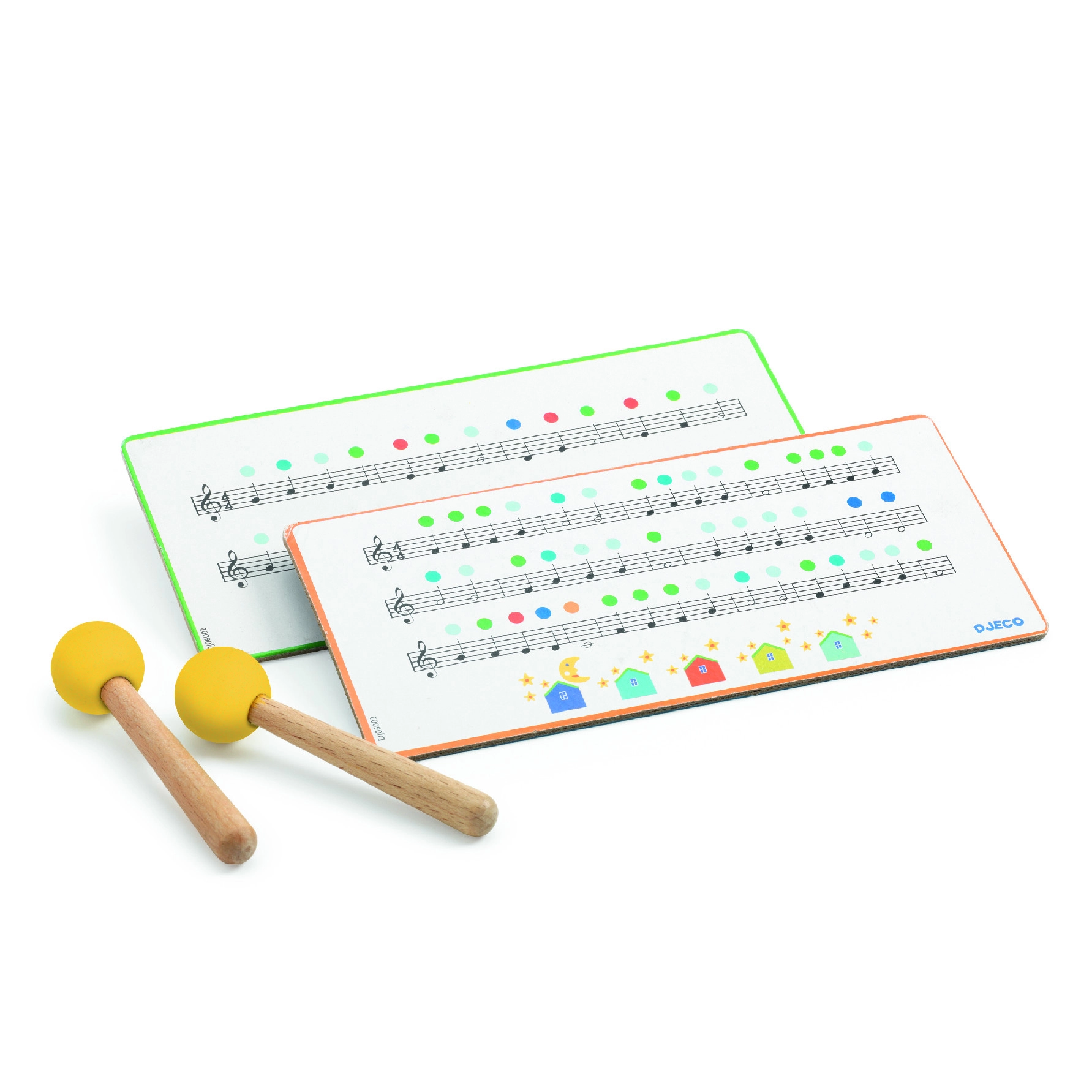 Označeni jezičci brojevima i priložene palice omogućuju djeci da odmah sviraju ugodne melodije bez prethodnog iskustva.