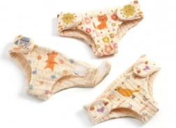 Ovaj set platnenih pelena DJECO donosi djeci autentičan doživljaj brige o lutkama. Pelene su izrađene od mekog tekstila, imaju praktično bočno zatvaranje na čičak, a zahvaljujući slatkim printovima postat će omiljeni dodatak svake dječje opreme. Dizajnirane su za višekratno oblačenje i svlačenje, što potiče kreativnu igru i razvoj socijalnih vještina.