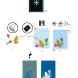 Uz set fotosenzitivnih papira Djeco pretvorit ćete sunčeve zrake u kreativno iskustvo. Položite na papir prirodne materijale, šablone ili sitne predmete, ostavite da djeluje sunce i nakon ispiranja u vodi na plavoj pozadini pojavit će se suptilne sjene i siluete. Jednostavan postupak, zadivljujući rezultati.