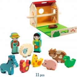Ova prekrasno izrađena farma razvija dječju maštu, finu motoriku i sposobnost pripovijedanja. Nakon otvaranja otkriva se kokošinjac i štala, a vani je livada za sve životinje. Ploča u kokošinjcu može se izvući i pretvara se u tobogan niz koji figurice mogu radosno kliziti.