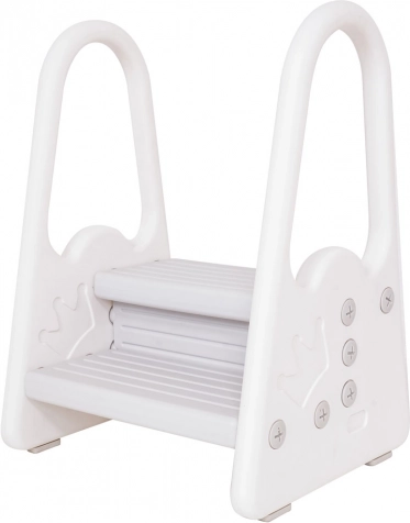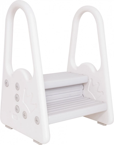 Lagan i stabilan dvorazinski stolić/stepenice s bočnim rukohvatima pomaže djeci sigurno dosegnuti do umivaonika, kuhinjskog pulta ili polica. Izrađen je od izdržljive plastike, ima protuklizne gazišne plohe, lako se čisti i zahvaljujući jednostavnoj montaži spreman je za uporabu u trenu. Idealan za poticanje samostalnosti djece od 3 godine naviše.