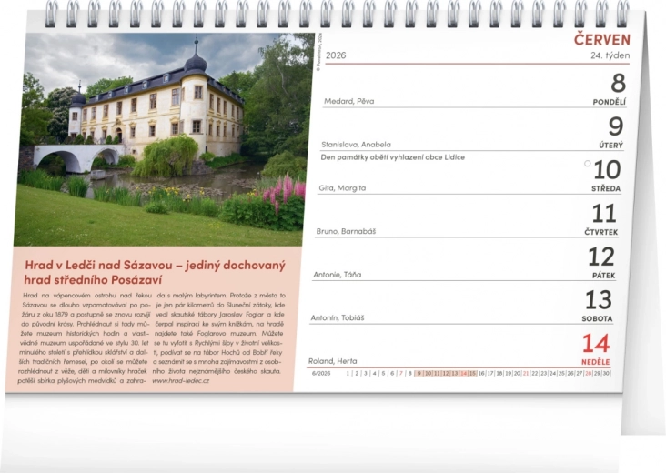 Kalendar Tvrđave i Dvorci 2026 odvest će vas na slikovita mjesta Češke Republike zahvaljujući prekrasnim fotografijama. To je idealan način kako planirati svoju godinu i istovremeno otkriti ljepotu češke povijesti.