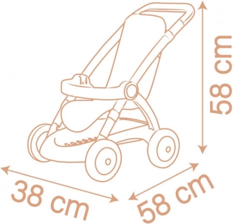 Ne samo da su ova kolica lijepa na pogled, već su i opremljena praktičnim spremištem ispod sjedala, što omogućuje pohranu dodataka za igru i drugih potrepština. Visina do ručke iznosi 58 cm, što je idealno za malu djecu.