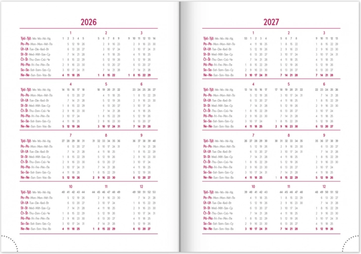 Ovaj dnevni dnevnik Notique Balakon 2026 donosi elegantan i praktičan način za održavanje vašeg svakodnevnog reda. U tamno plavoj boji koja je stilizirana i profesionalna, dnevnik je izrađen od kvalitetnog gornjeg materijala koji je otporan na oštećenja. Prednost dnevnika je njegov višejezični raspored koji uključuje češki i slovački kalendar s engleskim, njemačkim, mađarskim i ruskim prijevodima.