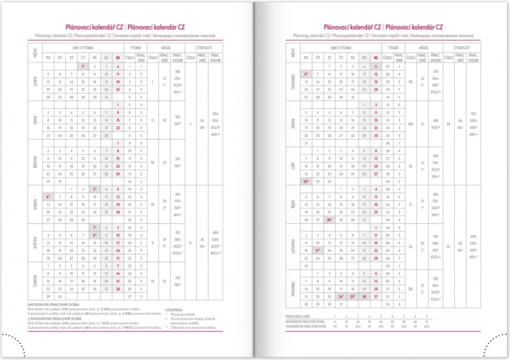 Dnevni dnevnik dizajniran je s obzirom na vašu potrebu za učinkovitom organizacijom. Sadrži češko-slovački kalendar s dodatnim jezicima kao što su engleski, njemački, mađarski i ruski.