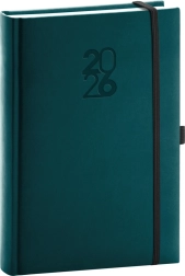 Dnevni dnevnik Aprint Top 2026 u prekrasnoj petrolej boji savršeni je pratitelj za planiranje tijekom cijele godine. Sadrži kalendarij za Čehoslovačku s dodatnim jezicima i praktična pomagala poput gumice za zatvaranje i držača za olovku.