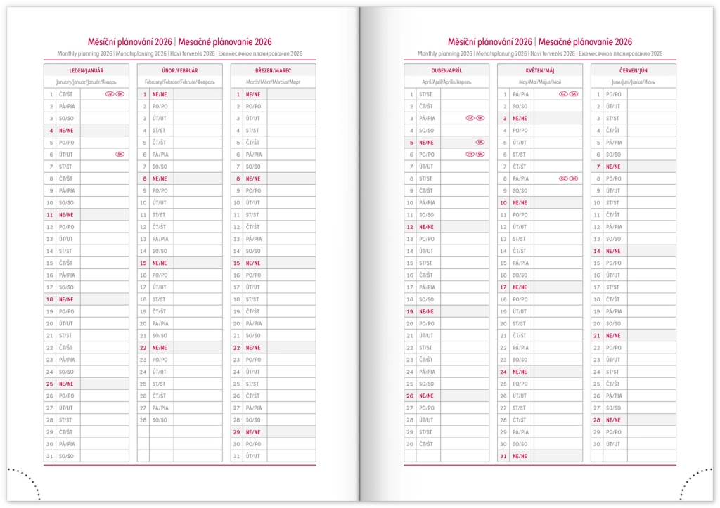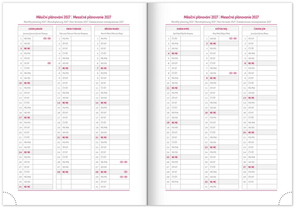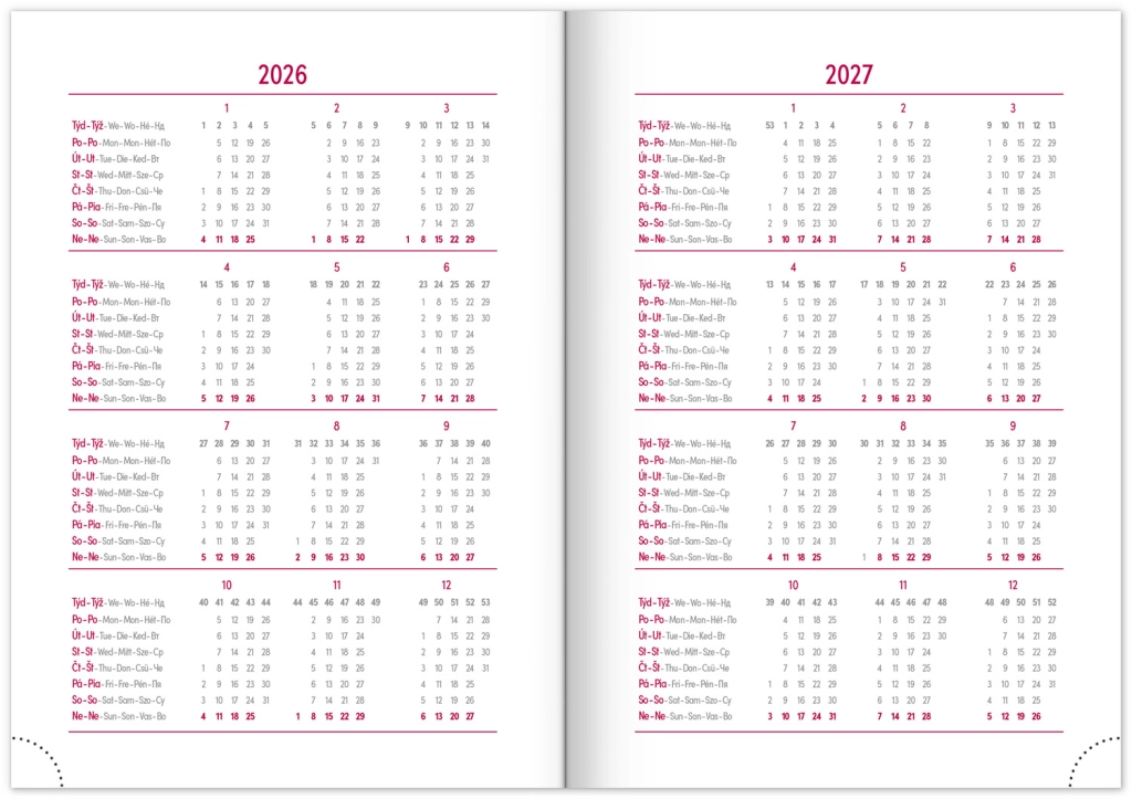 - Mjesečne planerske kalendare za 2026. i 2027.