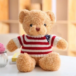 Ovaj slatki plišani medvjedić u klasičnoj majici s crveno-bijelim prugama bezvremenska je igračka koja će očarati svako dijete. Izrađen je od mekane i nježne tkanine koja je sigurna i za najmlađe.