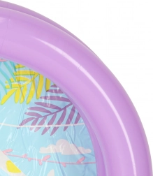 Izrađen od kvalitetnog PVC materijala i opremljen sigurnosnim ventilima, bazen je lagan i jednostavno prenosiv. Dva napuhujuća prstena pridonose njegovoj stabilnosti, a šareni uzorci na dnu dodaju veselu atmosferu svakoj vodenoj avanturi.
