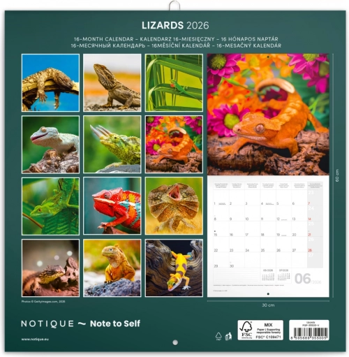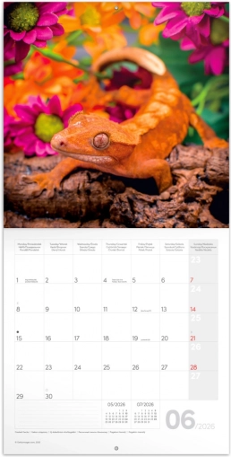 S našim Bilježničkim kalendarom Gušteri za 2026. svatko će vas mjesec razveseliti prekrasnim fotografijama predstavnika gmazova, koji podsjećaju na doba dinosaura. Kalendar uključuje: