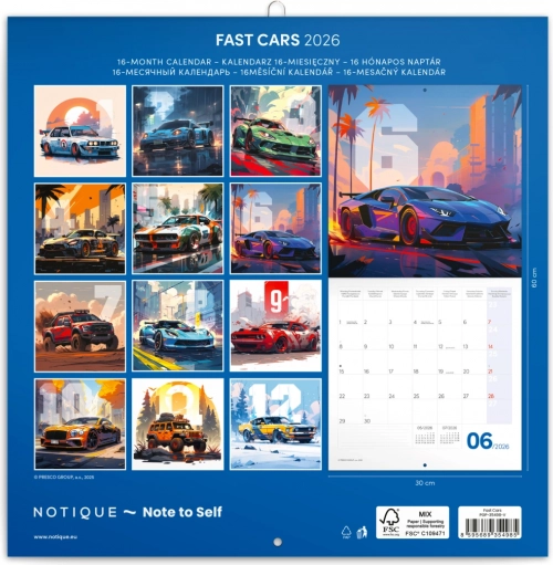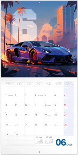 Sa zapisničkim kalendarom Fantastična auta 2026 svakog mjeseca ulazite u svijet najfantastičnijih automobila. Sadrži kalendarium na šest jezika i prostor za bilješke za svaki dan.