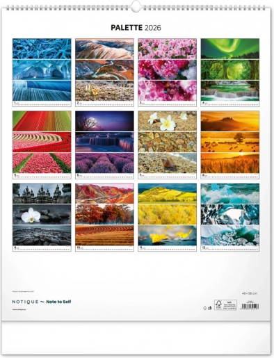 Zidni kalendar Paleta 2026 odvest će vas u sve kutke svijeta s zadivljujućim prizorima. Uživajte u pogledu na intenzivne boje koje dolaze do izražaja zahvaljujući visokoj gramaturi papira.