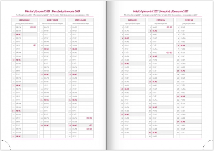 - Uključuje blagdane Češke i Slovačke Republike te međunarodne blagdane.