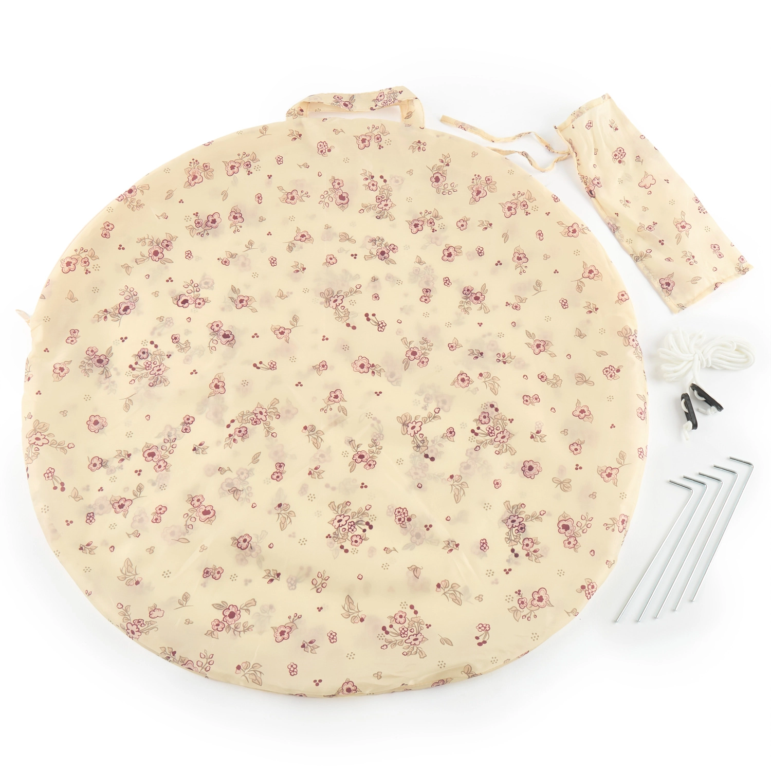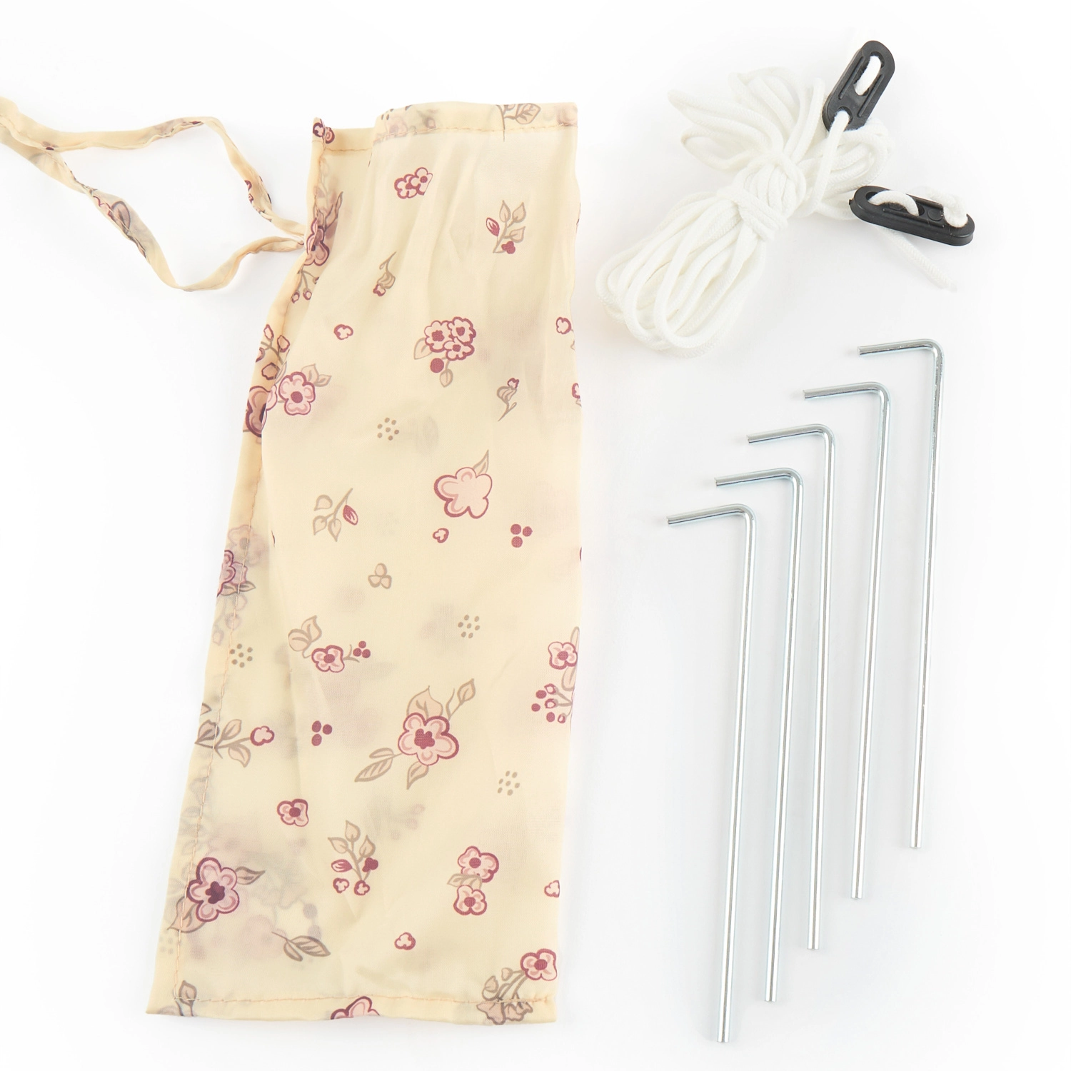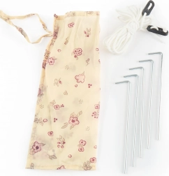 Sadržaj pakiranja uključuje plažni šator, dvije torbe za pohranu, četiri šatorska klina i užad za sidrenje. Dimenzije šatora su 130 x 115 x 130 cm, a izrađen je od 100% poliestera.