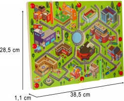 Tražite zabavnog i edukativnog suputnika za putovanja? Drvena magnetska igra Labirint za dvije osobe s motivom Velikog Grada donosi sate zabave i razvoja za vašu djecu. Sjajan način za poticanje koordinacije i logičkog razmišljanja kod djece od 3 godine.