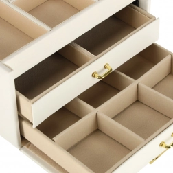 Donje ladice s mekom podstavom idealne su za narukvice, lančiće i veće dodatke. Lako izvlačenje zahvaljujući zlatnim ručkicama.