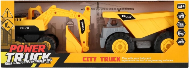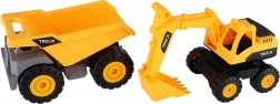 Odličan set za male graditelje! Dva izdržljiva plastična građevinska vozila s slobodnim hodom koja će se savršeno uklopiti u svaku kolekciju. Lako se kreću po bilo kojoj površini – dovoljno ih je lagano pogurnuti i voze.