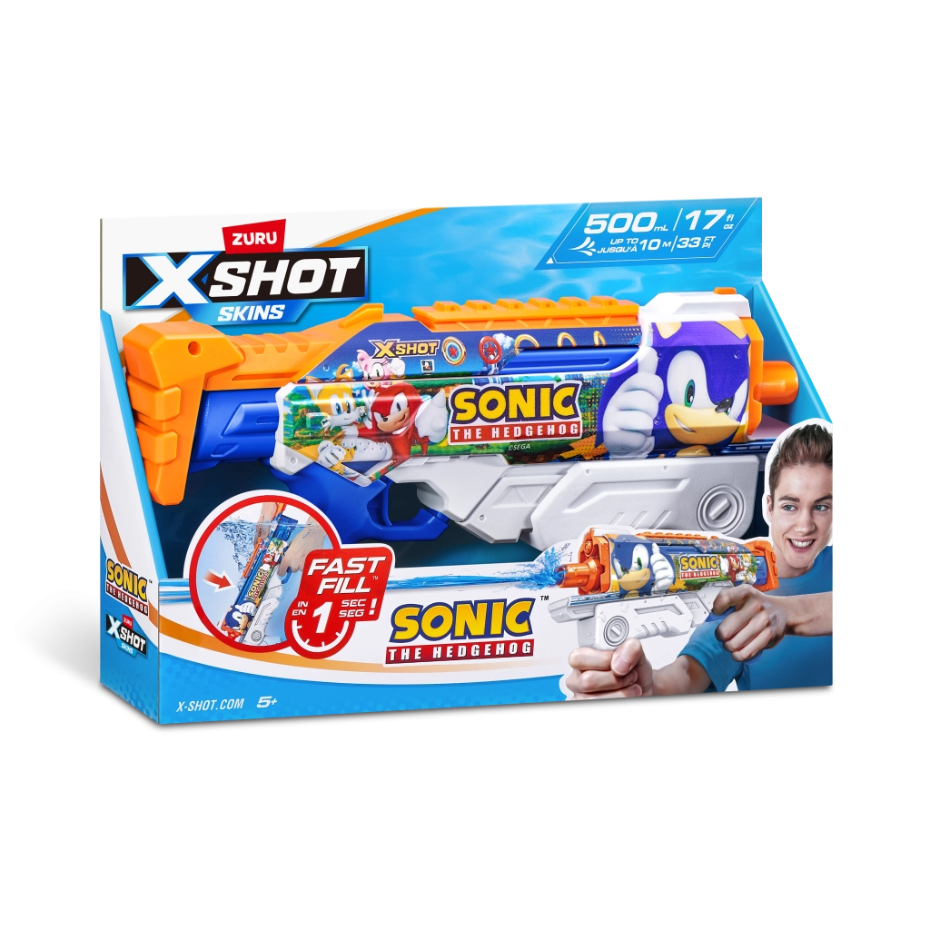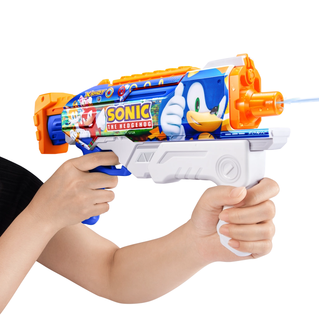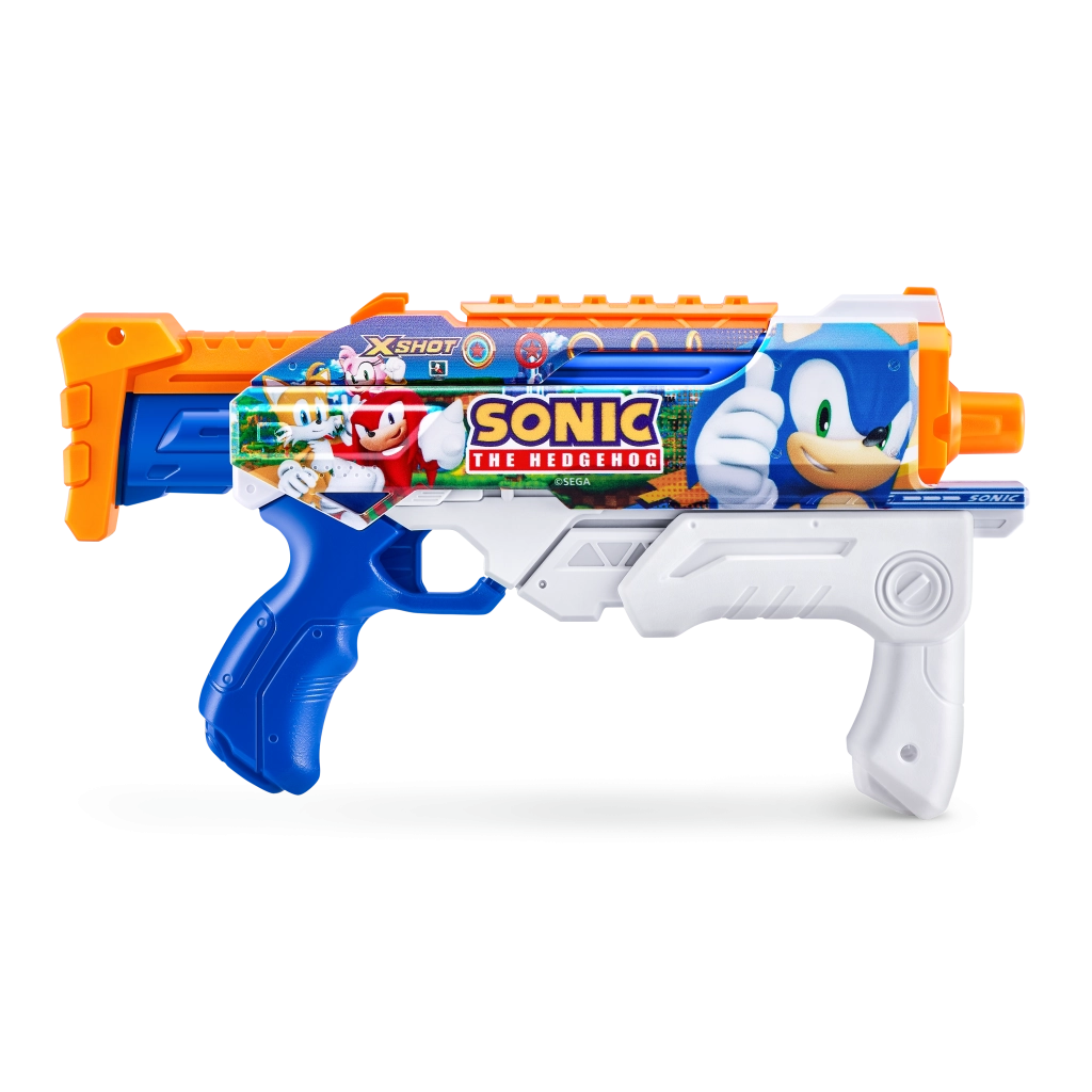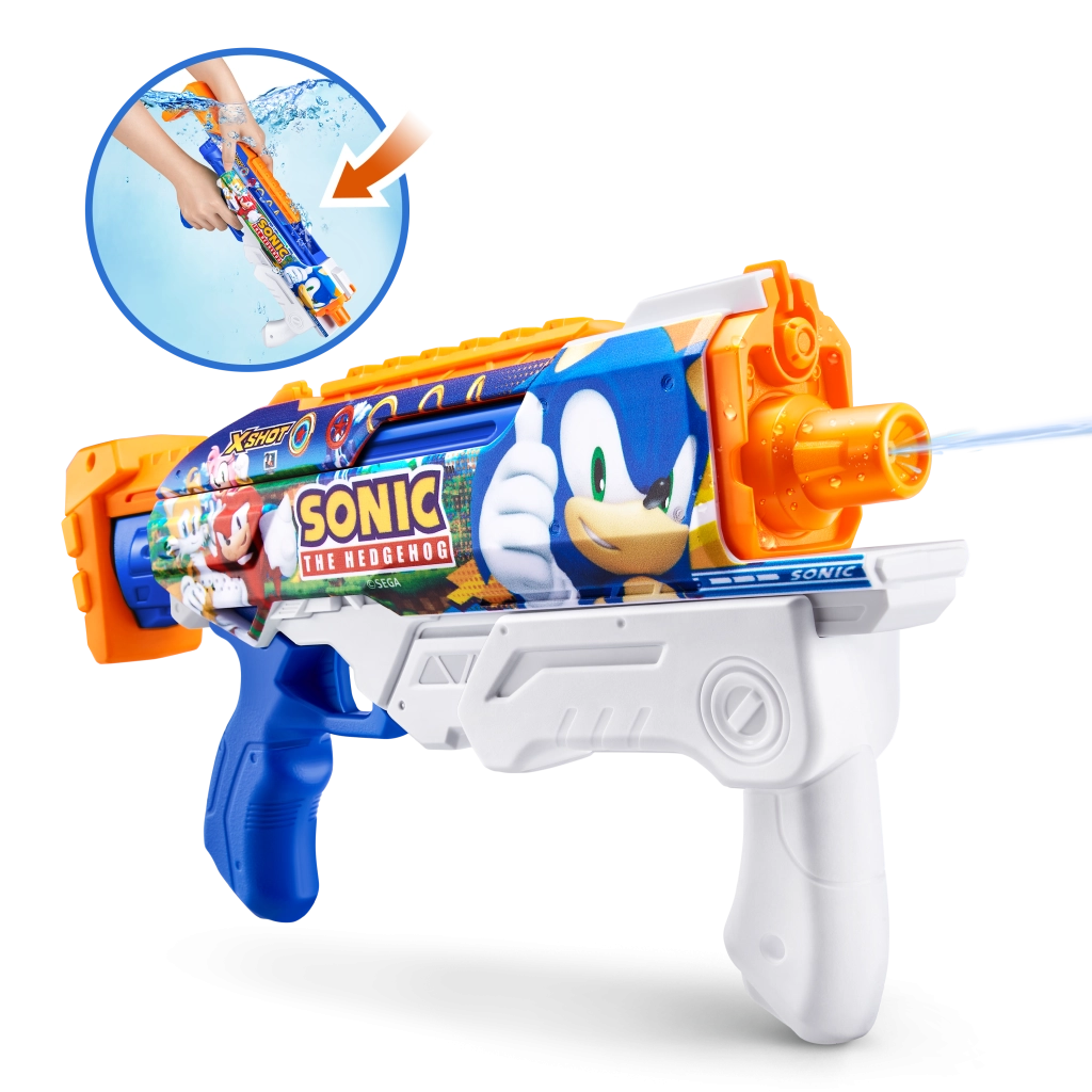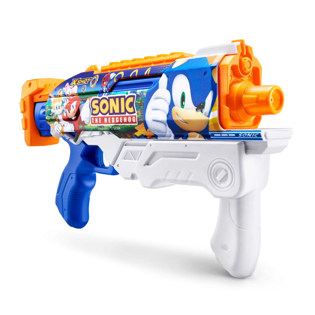 Predstavljamo vam vodeni pištolj marke Zuru X-Shot s motivom Sonic the Hedgehog i tehnologijom brzog punjenja, koja vam osigurava neprekidnu zabavu s dometom do 10 metara.