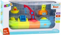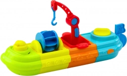 Brod se sastoji od četiri raznobojna modula koji čine jedan veliki sastav. Na palubi se nalaze zabavne figure putnika – pačić i kornjača, i mnogi pokretni dijelovi poput dizalice s kukom, vodeni mlin i vodeni top. Pačić može prskati vodu, što će zasigurno nasmijati svako dijete. Dodatne posudice omogućuju prelijevanje vode, što obogaćuje igru i podržava senzorički razvoj.