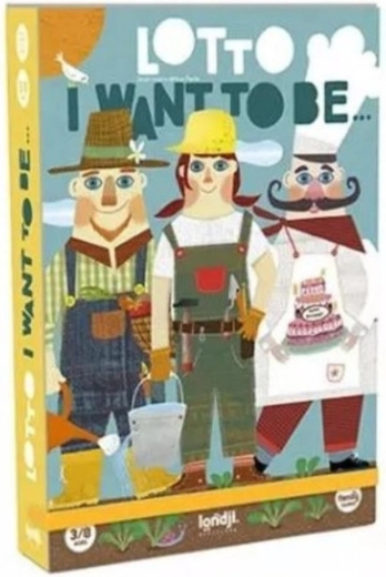 Loto LONDJI Volio bih postati savršena je igra za cijelu obitelj koja na zabavan način potiče učenje o zanimanjima. Igrači imaju na raspolaganju kartice s ilustracijama likova iz različitih profesija i žetone s alatima karakterističnima za ta zanimanja.