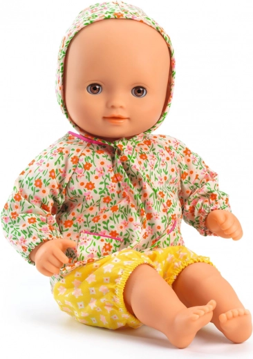 Svojom veličinom od 32 cm lutka Flora lako stane u mali dječji zagrljaj. Njezino lice, ruke i noge izrađeni su od mekog vinila, ugodnog na dodir. Flora nosi jaknicu s kapuljačom i kratke hlačice od 100% pamuka, što je čini ne samo stilskom, već i sigurnom igračkom za vaše dijete.