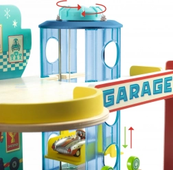 Drvena garaža od Djeca ilustrirana je igračka koja se savršeno uklapa u svijet Crazy Motors. Sadrži lako upravljiv lift, uklonjivu dodatnu opremu i nudi zabavne mogućnosti parkiranja.