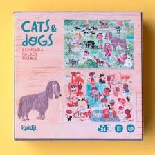 Otkrijte zabavu s dvoslojnom slagalicom Londji, koja prikazuje simpatične ilustracije pasa i mačaka s njihovim vlasnicima. Izvrsna opcija za djecu od tri godine naviše.