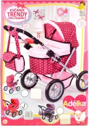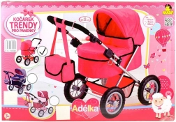 Duboka kolica u modernom dizajnu u ružičastoj boji, idealna za lutke do 42 cm, uključujući lutku Adélku. Jednostavna za sklapanje i rasklapanje za udobne izlete.